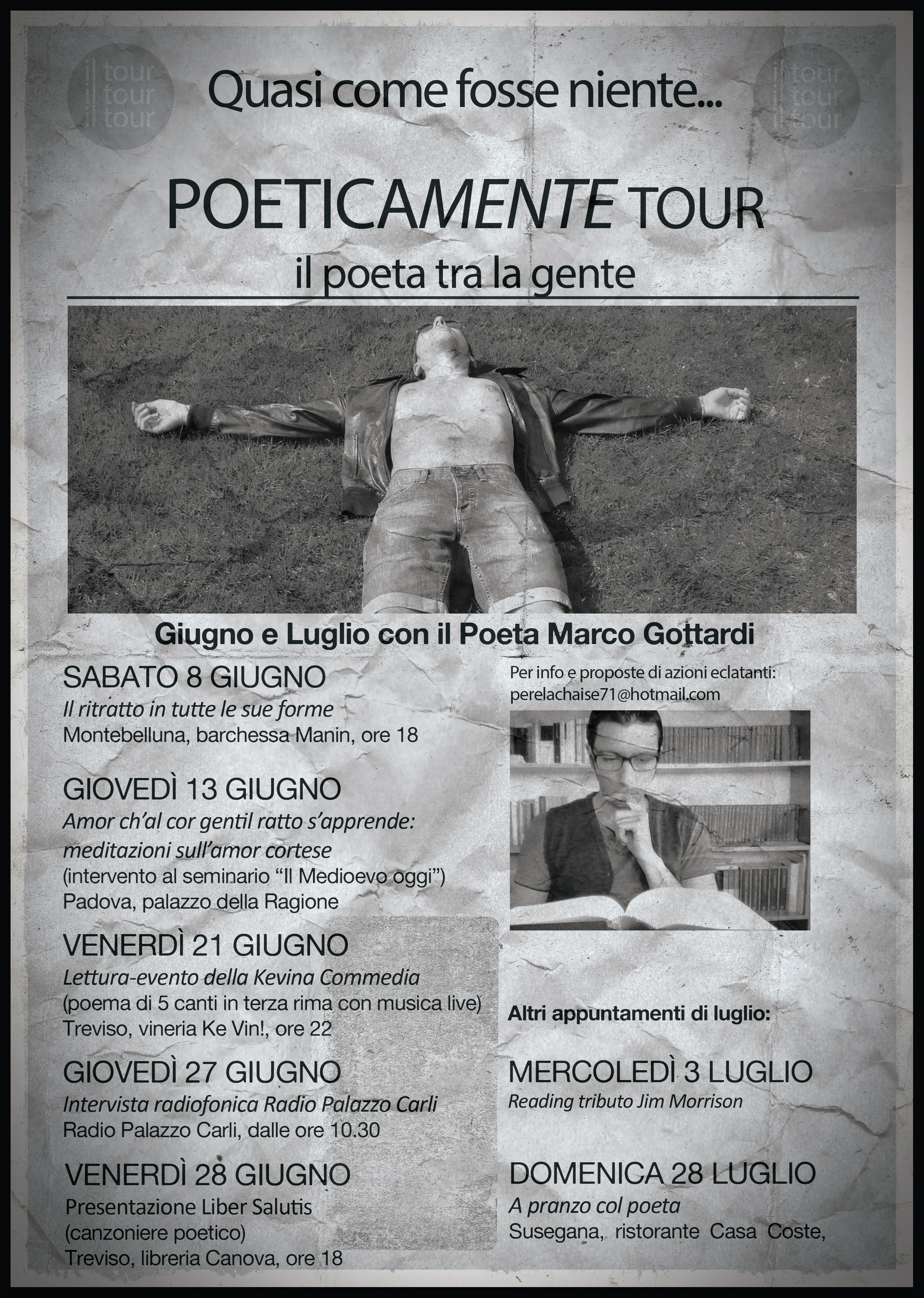 Quasi come fosse niente… PoeticaMente tour. Il poeta tra la gente. Calendario degli eventi di giugno e luglio 2013 con il poeta Marco Gottardi.